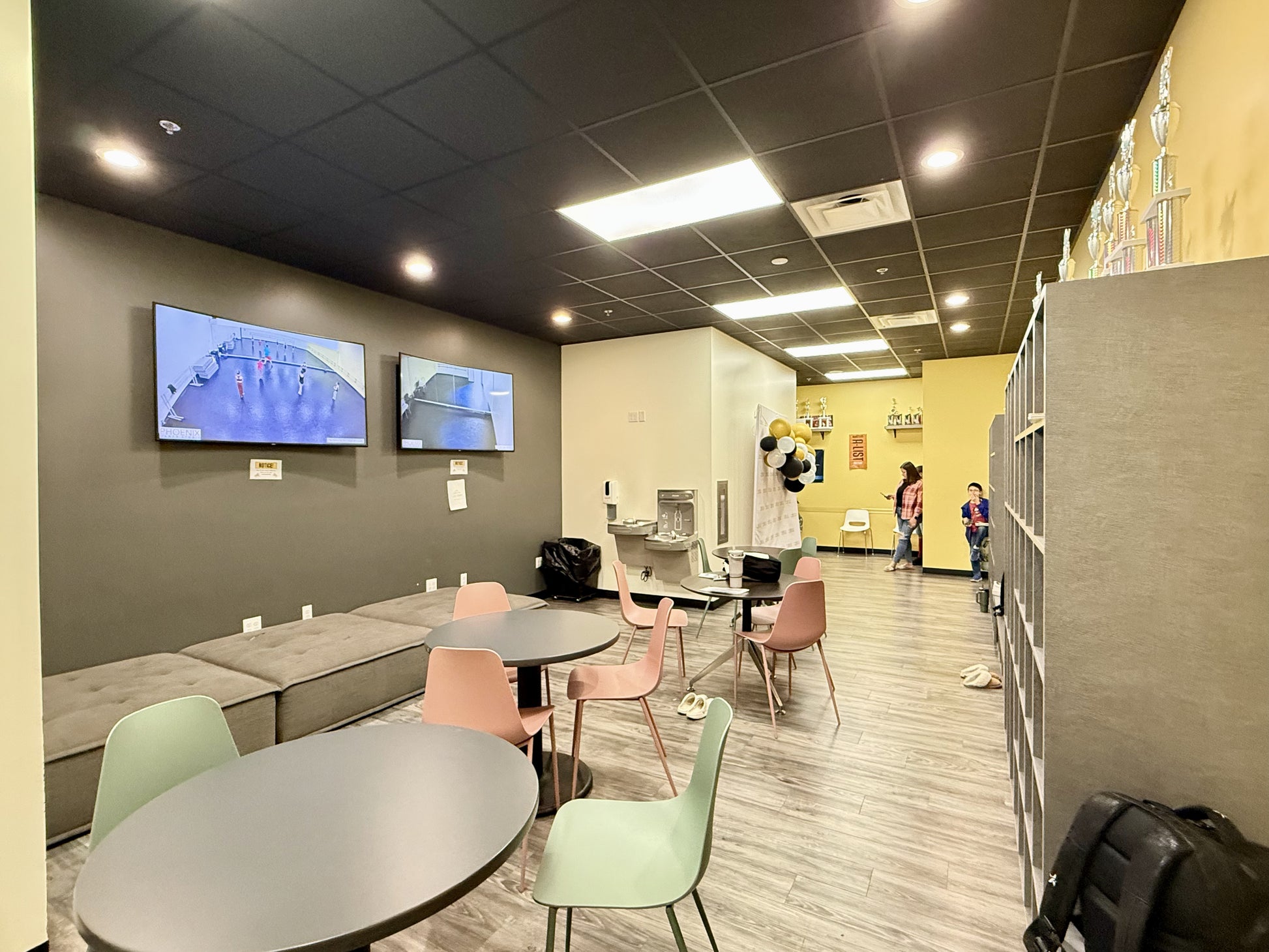 Boasting a generous 550 square feet, Middle Hall is one of our premier space, ideal for accommodating small classes, study hall, game arenas, etc. The studio features top-of-the-line floors, four tables, 8 chairs and cubbies for you to use for guests.